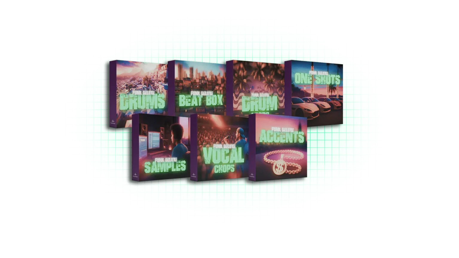 + de 150 timbres — Drums, Drum Loops, One-shots, Beat Box, Samples, Vocal Chops e Accents — tudo que você precisa pra deixar seu beat com cara de hit.